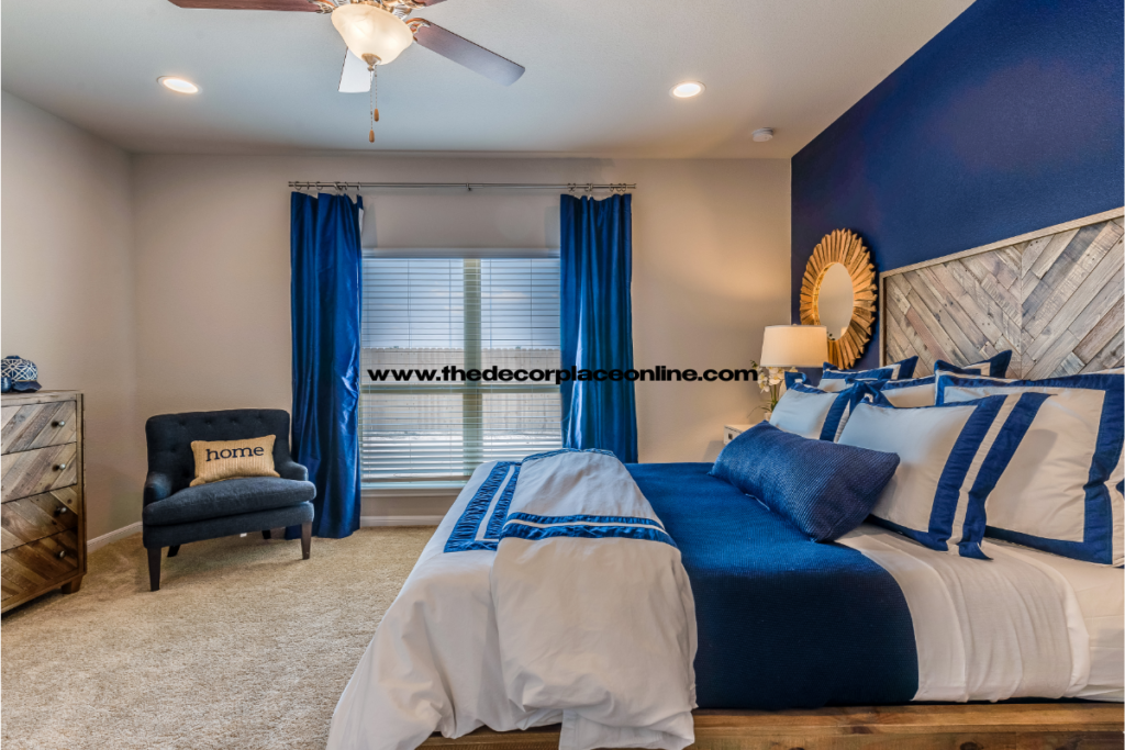 Textiles like rugs and curtains do more than just add comfort—they help pull the entire design together. A plush navy rug placed under the bed adds coziness, while gold-trimmed curtains or curtain rods offer a subtle hint of elegance.