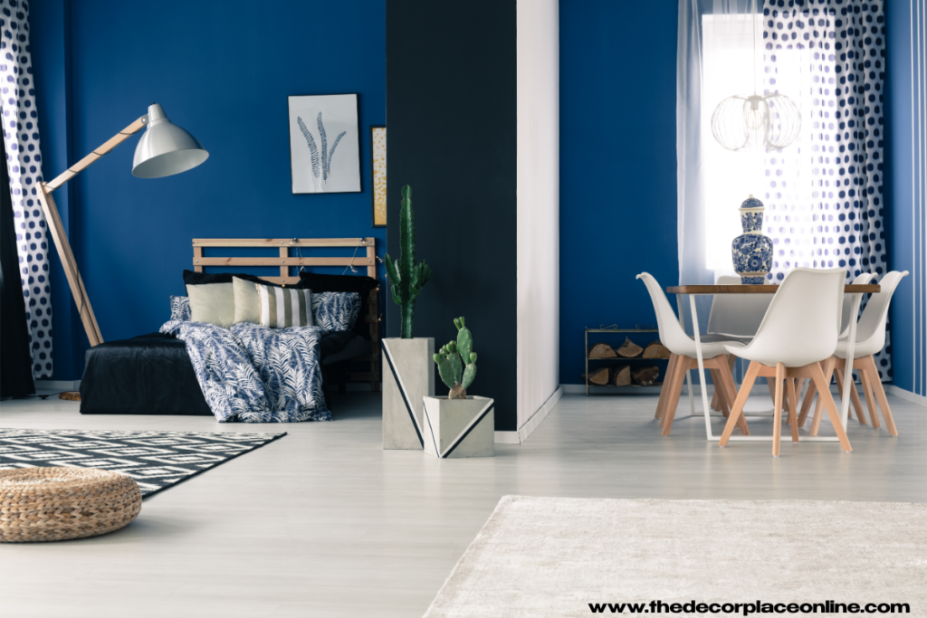 The best approach is to use navy blue as your primary base. You can apply it to your walls, bedding, or curtains. Then, layer in gold through decorative accents like mirrors, lamps, side tables, or even drawer handles. This creates a room that feels balanced, elegant, and cozy all at once.