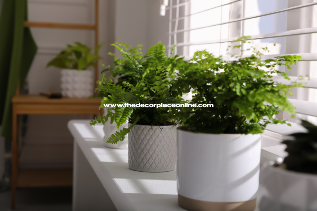 Try hanging Boston Ferns or trailing English Ivy from ceiling hooks to save counter space and add vertical interest. Peace Lilies or Spider Plants look great on windowsills, small shelves, or even beside your sink.