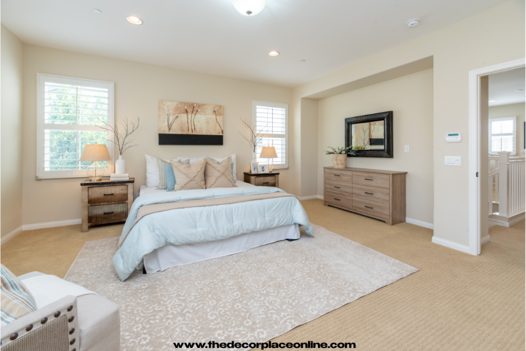 This style of bedroom color schemes adds a cohesive and designer look to your space without needing major changes. It works beautifully in modern and minimalist settings.