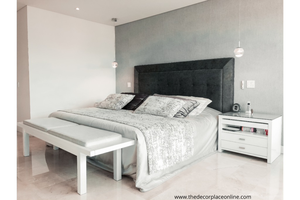 Slim nightstands with minimal décor will ensure that your space feels airy and uncluttered. You might also consider floating furniture, such as wall-mounted shelves or bedside tables, to create an illusion of more space and keep the room feeling open.