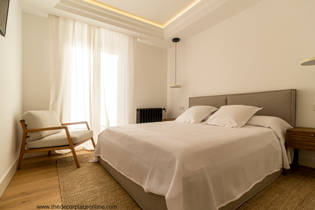 Mixing these different textures creates visual interest and adds warmth to the space. For the bedding, opt for fluffy duvets, soft cotton sheets, and textured throw pillows in shades of ivory, cream, or even soft pastels.