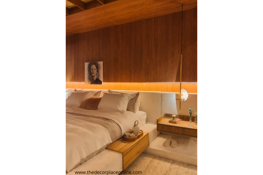 Wooden elements in brown tones can make your room feel more grounded and organic. Wooden bedside tables, bookshelves, or even wall panels add texture and warmth, without overwhelming the space. Using reclaimed wood in furniture design adds an eco-friendly element to your small bedroom.